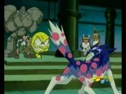 فأصبح التزامن , ووجد جواد نفسه في عالم آخر, وتعرف على الفتاة تدعى هالة ولديها وحش اسمه نطاط وعرف منهم انهم هاربون من بلاك دينوس, وعلم انهما في مهمه لإيجاد العنقاء القديمه لإيقاف رئيس الوحوش موو , وحينها استطاع فتح الوحش الأول سكر.
