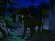 كان الصغير ماوكلي نائم في سريره عندما ذهب أبويه لإحضار بعض الأخشاب من الغابة جاء ضبع من أتباع النمر الشرير شاريخان وخطف الطفل، حاول الأب إنقاذه ولكن دون جدوى فقد أسرع الضبع بالفرار والهروب من بين يديه ولكن بمساعدة الفهد الأسود والذي أوقف الضبع و أخذ الفتى ماوكلي منه.